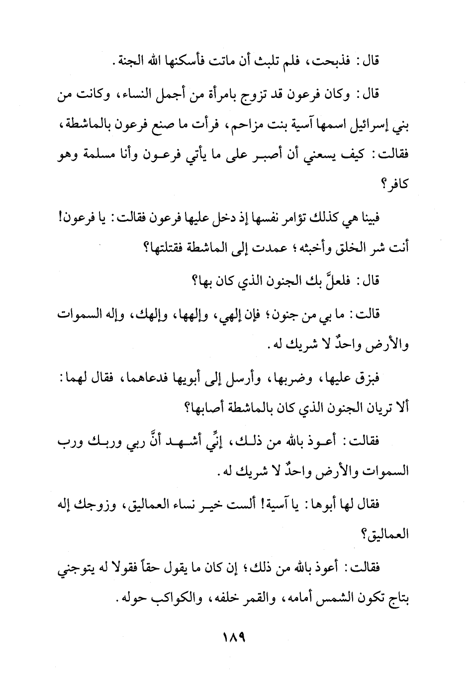 فبينا هي كذلك تؤامر نفسها إذ دخل عليها فرعون فقالت: يا فرعون! أنت شر الخلق وأخبثه؛ عمدت إلى الماشطة فقتلتها؟