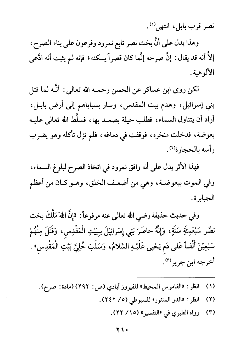 وهذا يدل على أنَّ بخت نصر تابع نمرود وفرعون على بناء الصرح، إلَّا أنه قد يقال: إنَّ صرحه إنَّما كان قصراً يسكنه؛ فإنه لم يثبت أنه ادَّعى الألوهية.