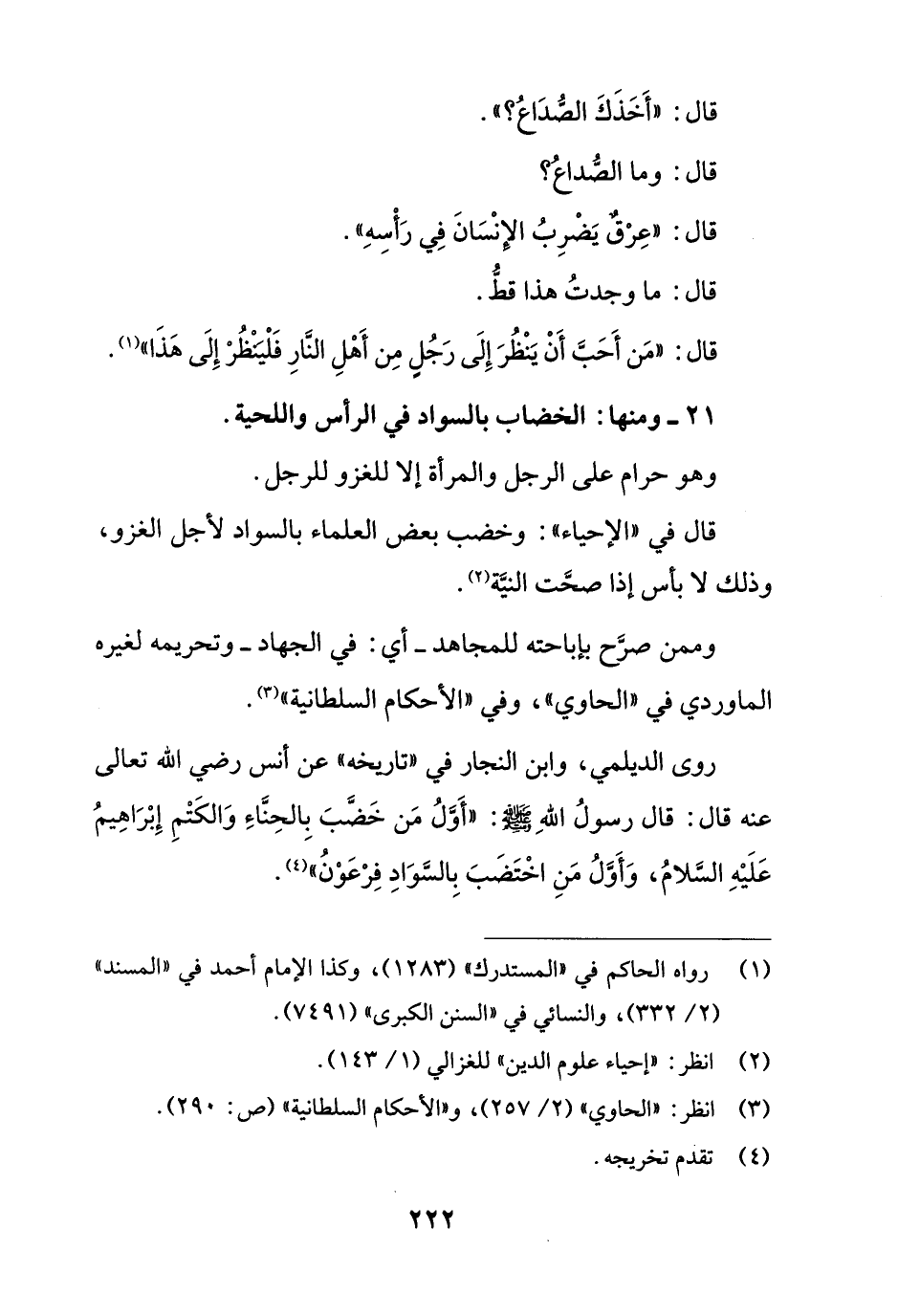 21 - ومنها: الخضاب بالسواد في الرأس واللحية.