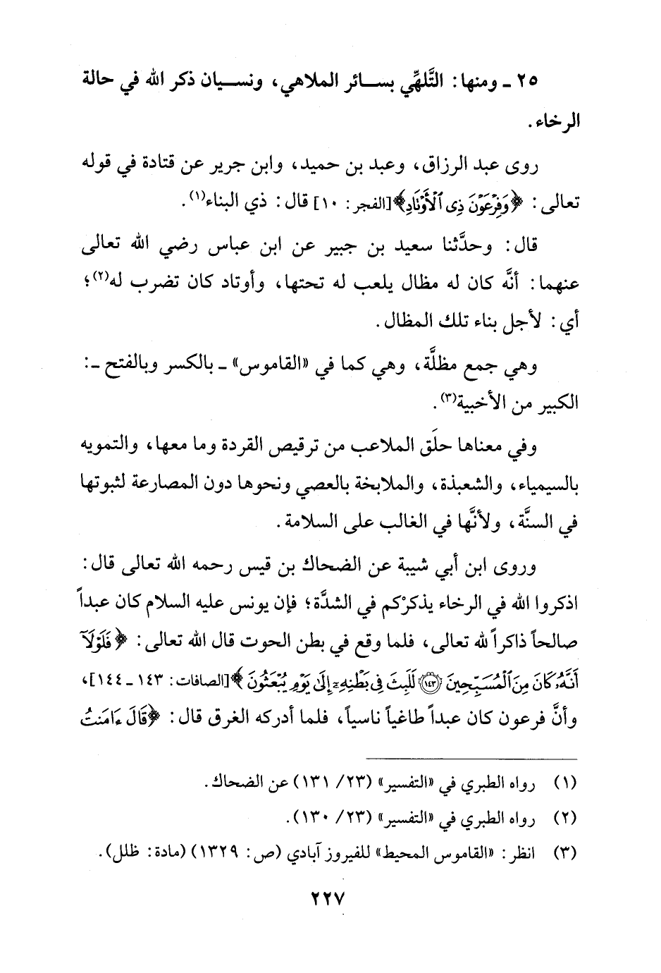 25 - ومنها: التَّلهِّي بسائر الملاهي، ونسيان ذكر الله في حالة الرخاء.