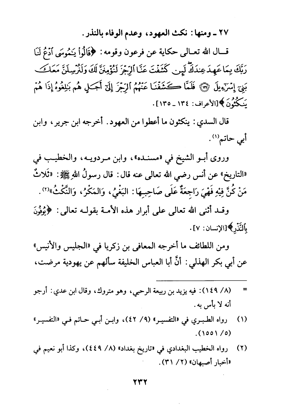 27 - ومنها: نكث العهود، وعدم الوفاء بالنذر.