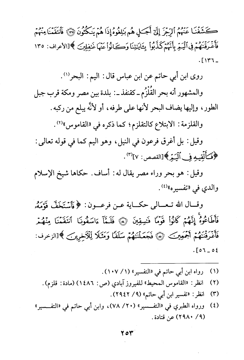 وقيل: بل أغرق فرعون في النيل، وهو اليم كما في قوله تعالى: {فَأَلْقِيهِ فِي الْيَمِّ} [القصص: 7] (¬3).