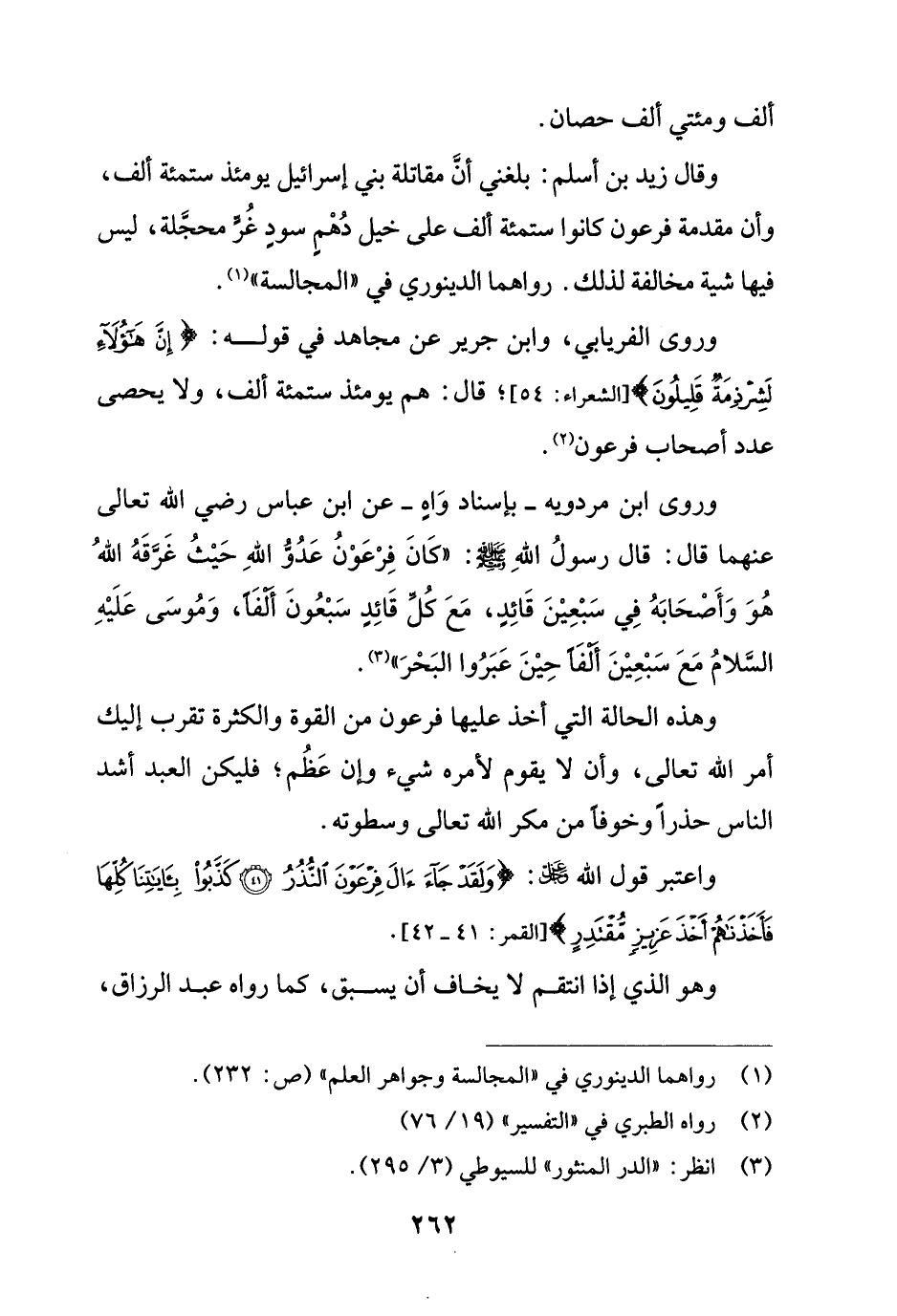 وقال زيد بن أسلم: بلغني أن مقاتلة بني إسرائيل يومئذ ستمئة ألف، وأن مقدمة فرعون كانوا ستمئة ألف على خيل دهمِ سودِ غُر محجَّلة، ليس فيها شية مخالفة لذلك. رواهما الدينوري في "المجالسة" (¬1).