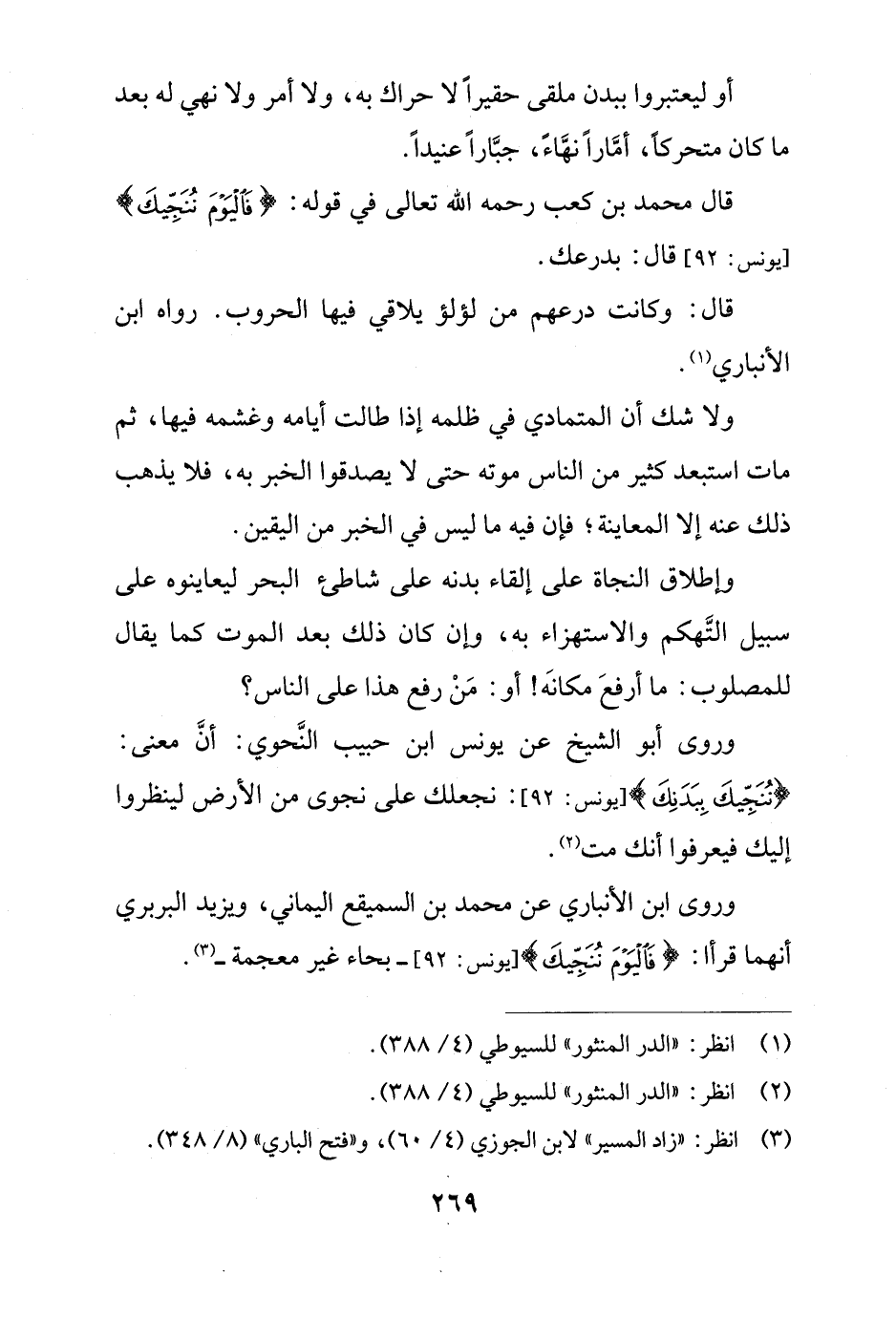 قال محمد بن كعب رحمه الله تعالى في قوله: {فَالْيَوْمَ نُنَجِّيكَ} [يونس: 92] قال: بدرعك.