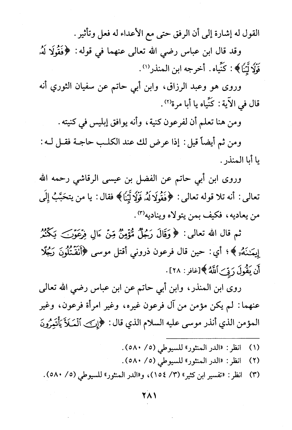 وقد قال ابن عباس رضي الله تعالى عنهما في قوله: {فَقُولَا لَهُ قَوْلًا لَيِّنًا}: كَنِّياه. أخرجه ابن المنذر (¬1).