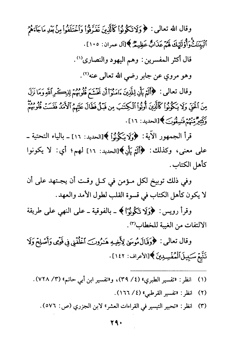 قرأ الجمهور الآية: {وَلَا يَكُونُوا} [الحديد: 16]- بالياء التحتية - على معنى، وكذلك: {أَلَمْ يَأْنِ} [الحديد: 16] لهم؛ أي: لا يكونوا كأهل الكتاب.