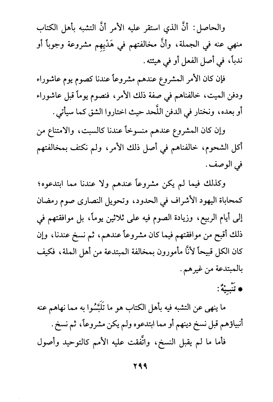 ما ينهى عن التشبه فيه بأهل الكتاب هو ما تَلَبَّسُوا به مما نهاهم عنه أنبياؤهم قبل نسخ دينهم أو مما ابتدعوه ولم يكن مشروعاً، ثم نسخ.