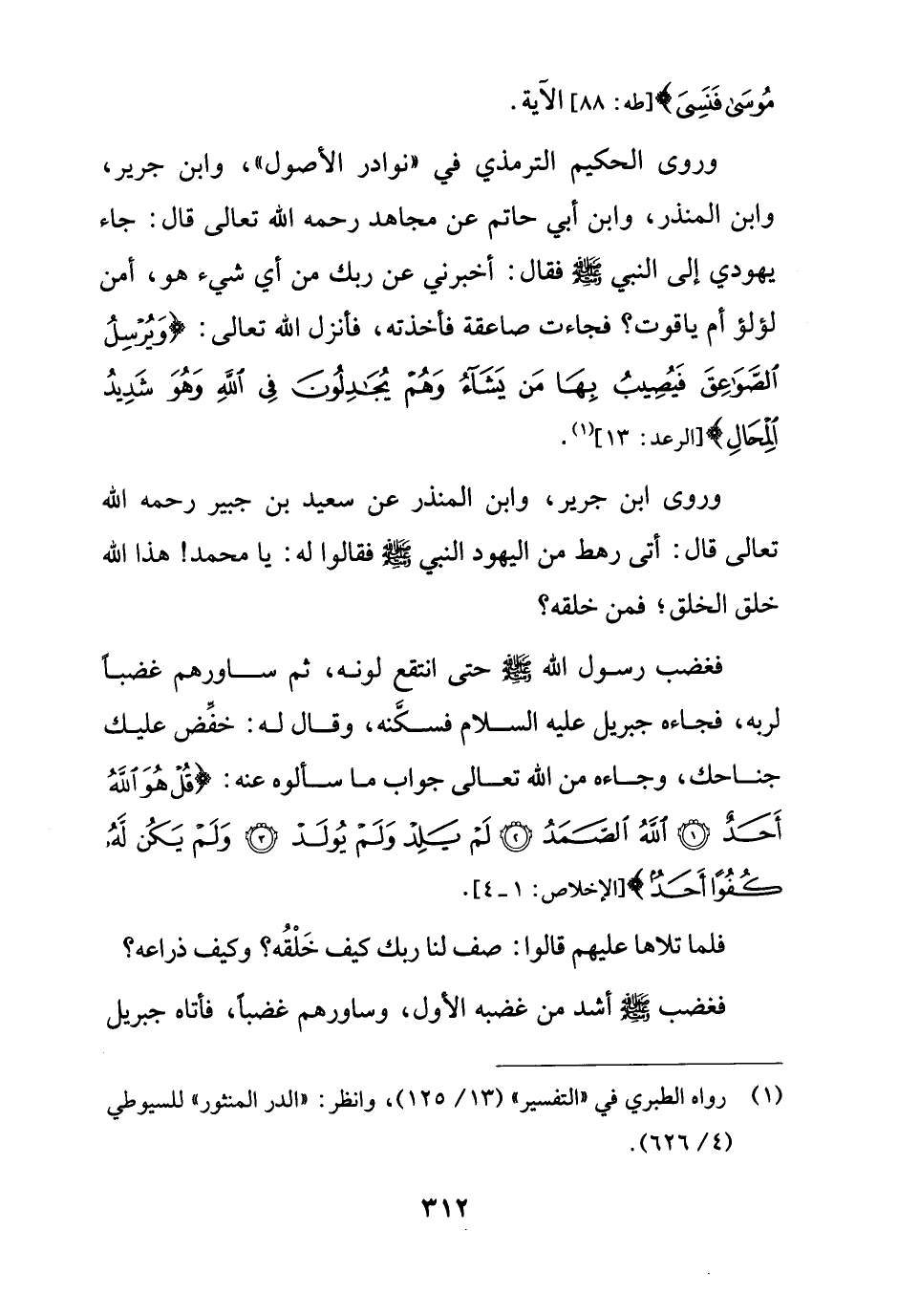وروى ابن جرير، وابن المنذر عن سعيد بن جبير رحمه الله تعالى قال: أتى رهط من اليهود النبي -صلى الله عليه وسلم- فقالوا له: يا محمد! هذا الله خلق الخلق؛ فمن خلقه؟