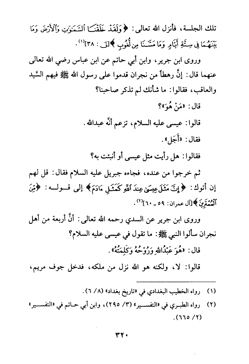وروى ابن جرير، وابن أبي حاتم عن ابن عباس رضي الله تعالى عنهما قال: إنَّ رهطاً من نجران قدموا على رسول الله -صلى الله عليه وسلم- فيهم السَّيد والعاقب، فقالوا: ما شأنك لم تذكر صاحبنا؟