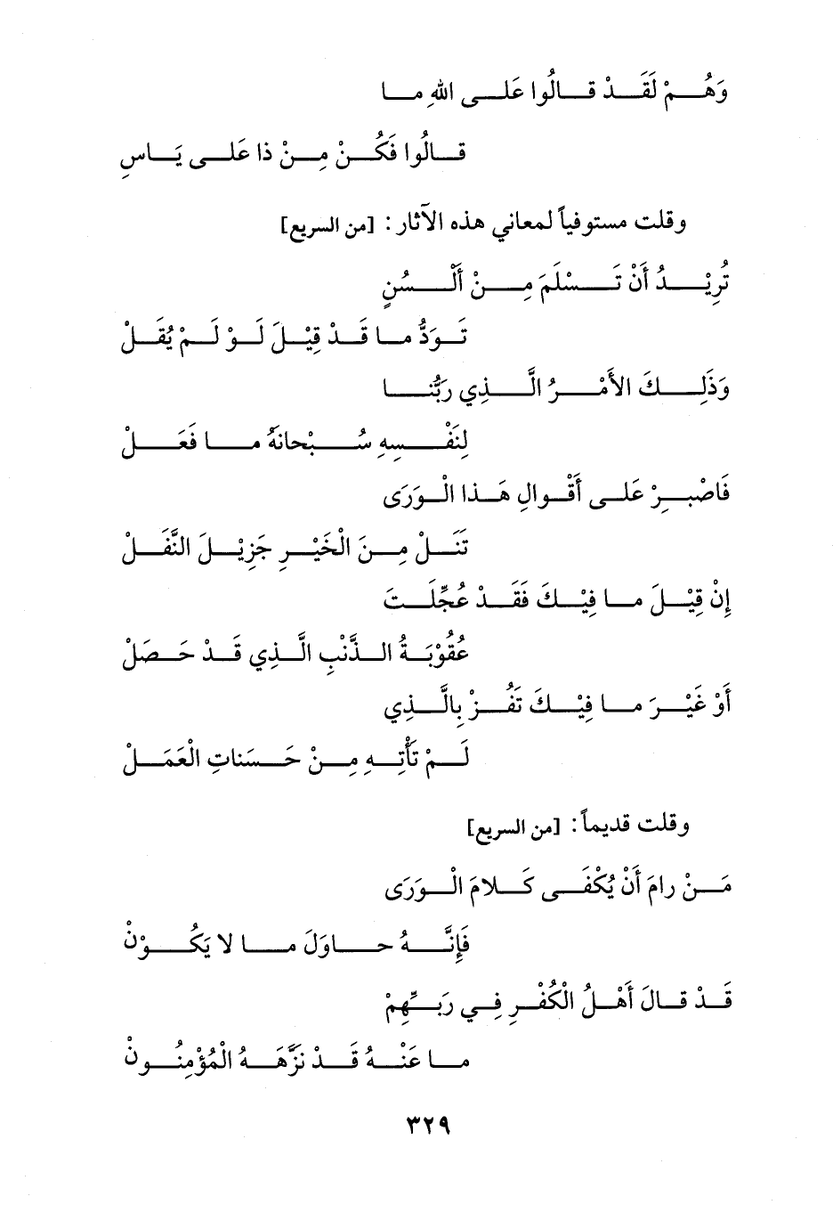 قَدْ قالَ أَهْلُ الْكُفْرِ فِي رَبِّهِمْ ... ما عَنْهُ قَدْ نزَّهَهُ الْمُؤْمِنُونْ