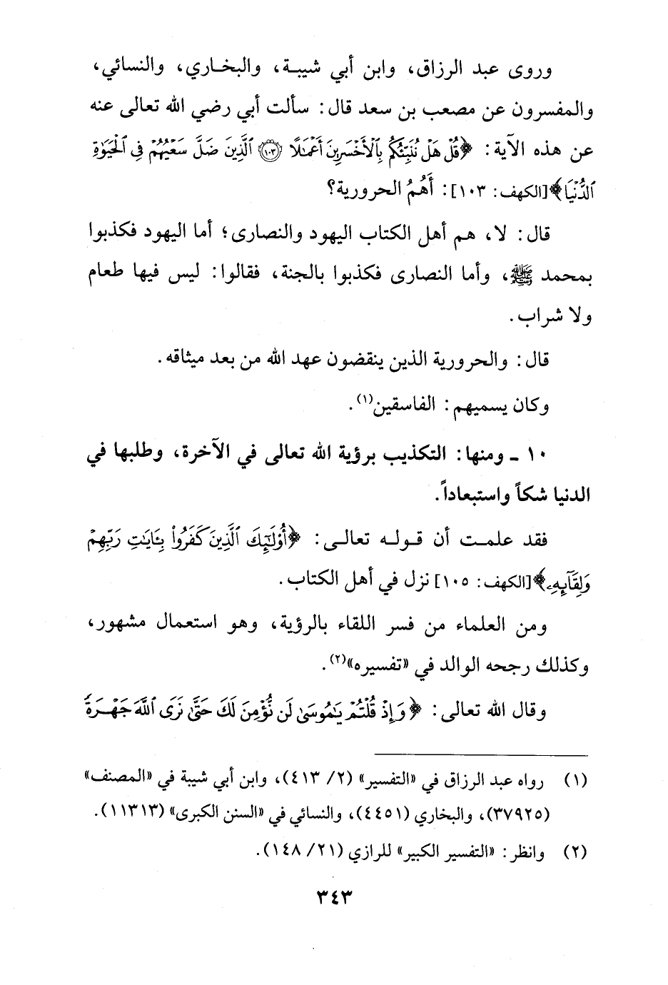 وروى عبد الرزاق، وابن أبي شيبة، والبخاري، والنسائي، والمفسرون عن مصعب بن سعد قال: سألت أبي رضي الله تعالى عنه عن هذه الآية: {قُلْ هَلْ نُنَبِّئُكُمْ بِالْأَخْسَرِينَ أَعْمَالًا (103) الَّذِينَ ضَلَّ سَعْيُهُمْ فِي الْحَيَاةِ الدُّنْيَا} [الكهف: 103]: أَهُمُ الحرورية؟