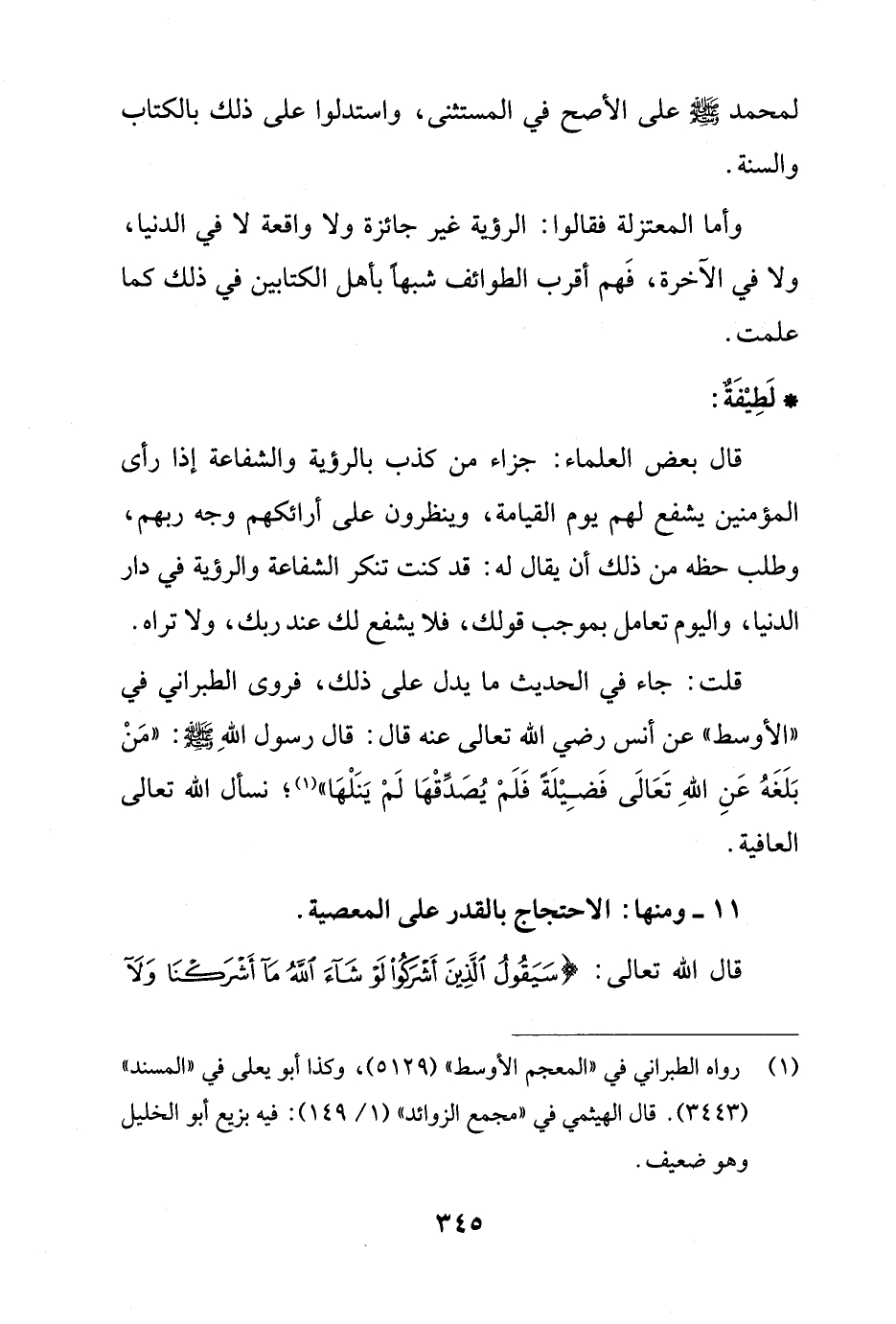 وأما المعتزلة فقالوا: الرؤية غير جائزة ولا واقعة لا في الدنيا، ولا في الآخرة، فَهم أقرب الطوائف شبهاً بأهل الكتابين في ذلك كما علمت.