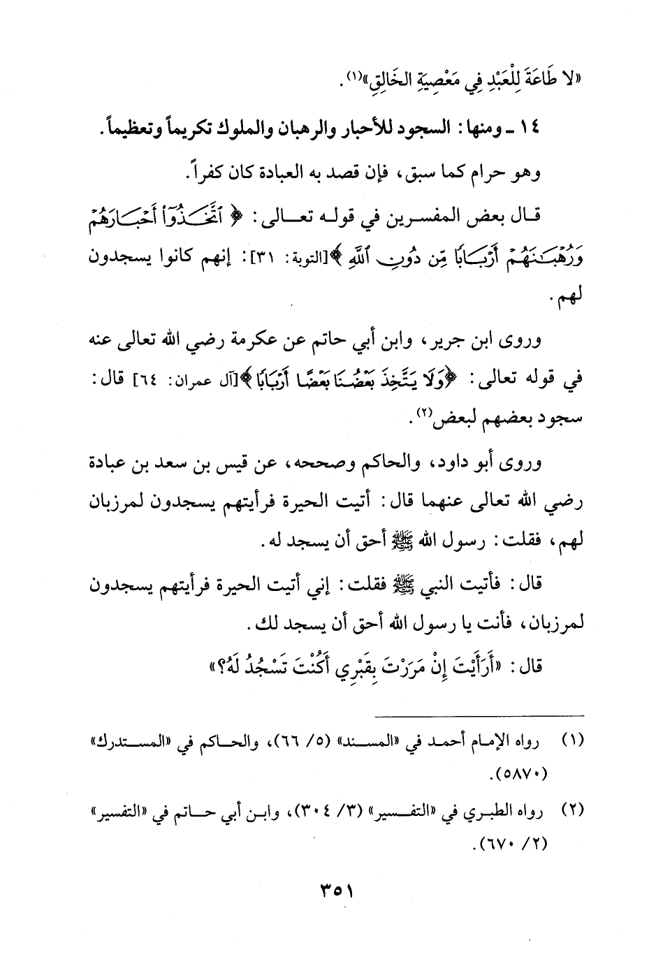 14 - ومنها: السجود للأحبار والرهبان والملوك تكريماً وتعظيماً.