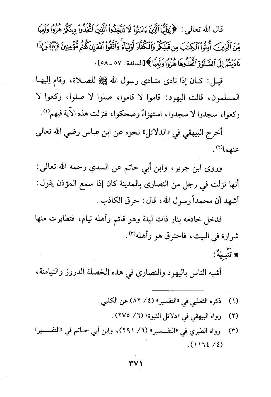 قال الله تعالى: {يَا أَيُّهَا الَّذِينَ آمَنُوا لَا تَتَّخِذُوا الَّذِينَ اتَّخَذُوا دِينَكُمْ هُزُوًا وَلَعِبًا مِنَ الَّذِينَ أُوتُوا الْكِتَابَ مِنْ قَبْلِكُمْ وَالْكُفَّارَ أَوْلِيَاءَ وَاتَّقُوا اللَّهَ إِنْ كُنْتُمْ مُؤْمِنِينَ (57) وَإِذَا نَادَيْتُمْ إِلَى الصَّلَاةِ اتَّخَذُوهَا هُزُوًا وَلَعِبًا} [المائدة: 57، 58].