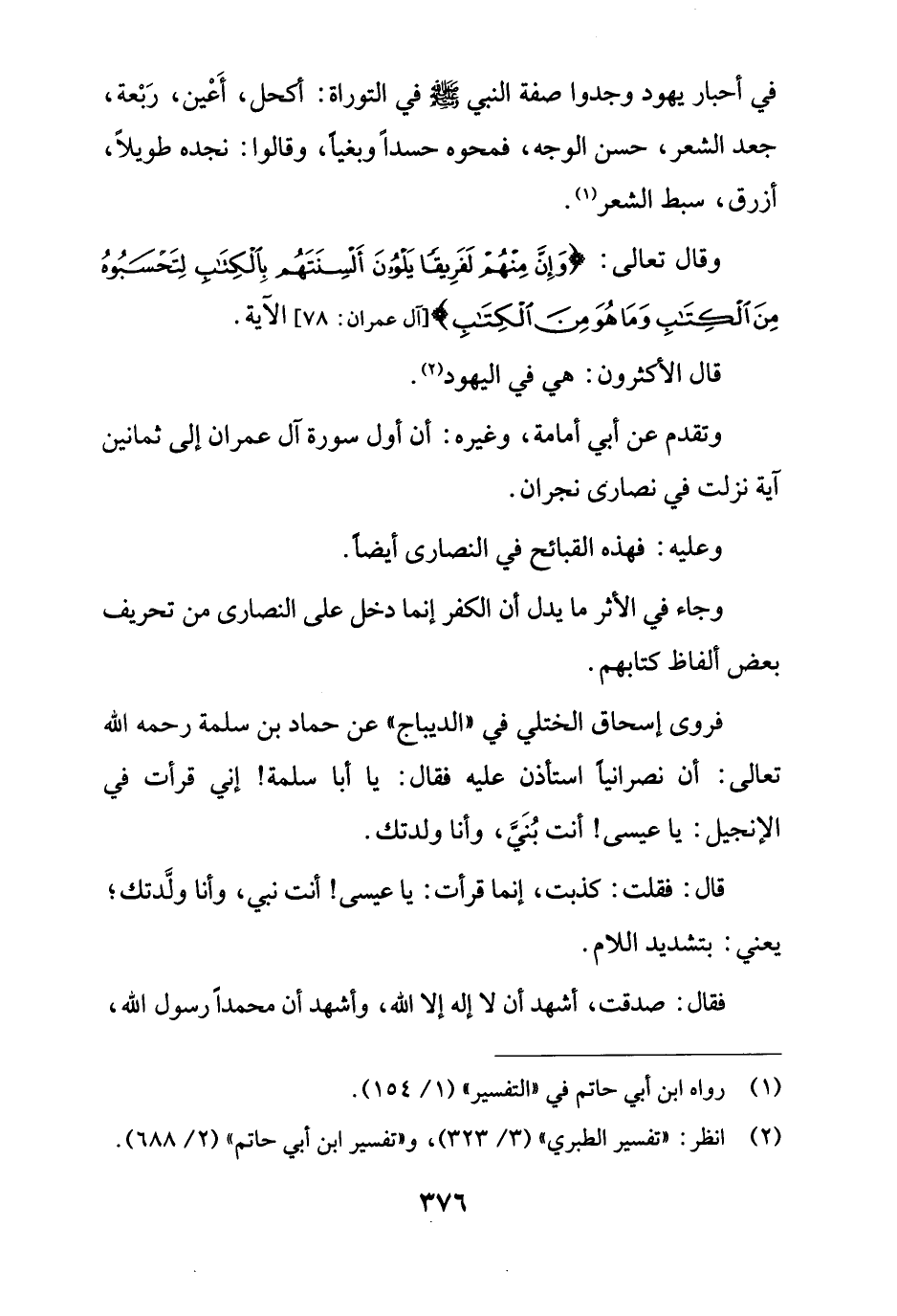 وقال تعالى: {وَإِنَّ مِنْهُمْ لَفَرِيقًا يَلْوُونَ أَلْسِنَتَهُمْ بِالْكِتَابِ لِتَحْسَبُوهُ مِنَ الْكِتَابِ وَمَا هُوَ مِنَ الْكِتَابِ} [آل عمران: 78]. الآية.