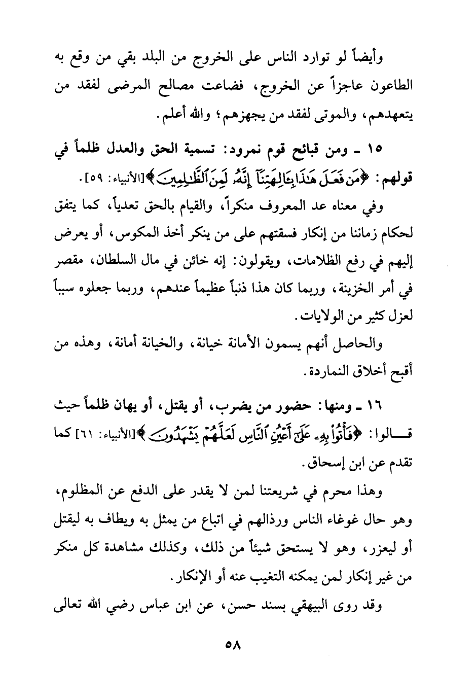 15 - ومن قبائح قوم نمرود: تسمية الحق والعدل ظلماً في قولهم: {مَنْ فَعَلَ هَذَا بِآلِهَتِنَا إِنَّهُ لَمِنَ الظَّالِمِينَ (59)} [الأنبياء: 59].