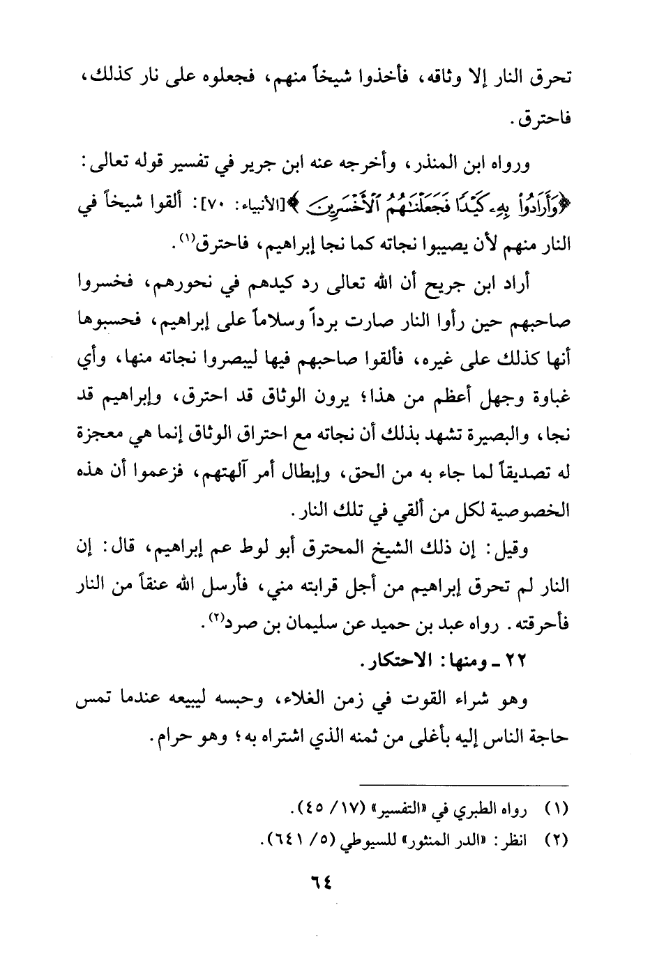 ورواه ابن المنذر، وأخرجه عنه ابن جرير في تفسير قوله تعالى: {وَأَرَادُوا بِهِ كَيْدًا فَجَعَلْنَاهُمُ الْأَخْسَرِينَ (70)} [الأنبياء: 70]: ألقوا شيخاً في النار منهم لأن يصيبوا نجاته كما نجا إبراهيم، فاحترق (¬1).