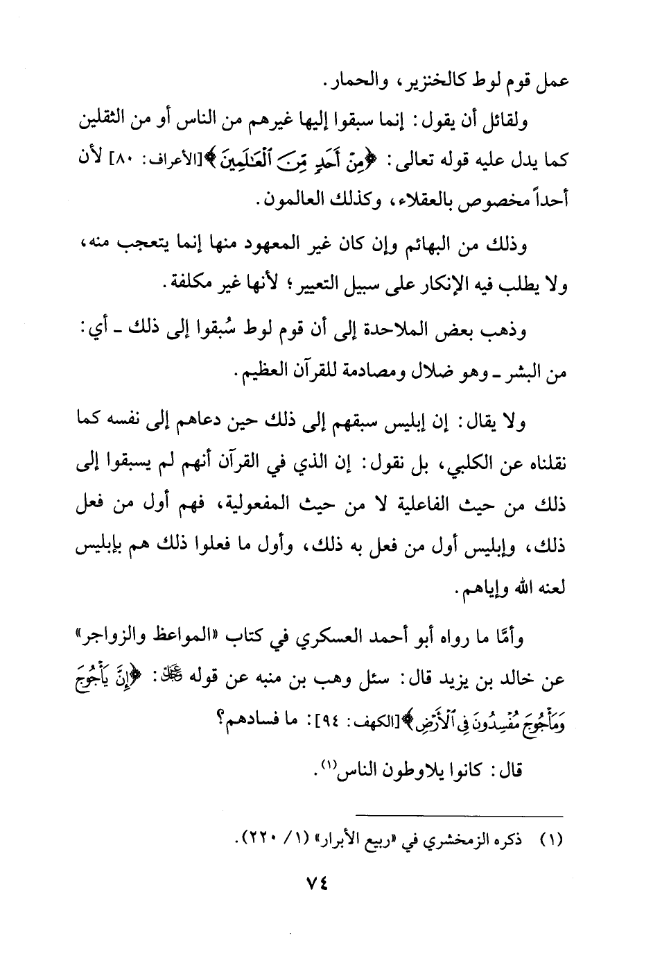 وأمَّا ما رواه أبو أحمد العسكري في كتاب "المواعظ والزواجر" عن خالد بن يزيد قال: سئل وهب بن منبه عن قوله - عز وجل -: {إِنَّ يَأْجُوجَ وَمَأْجُوجَ مُفْسِدُونَ فِي الْأَرْضِ} [الكهف: 94]: ما فسادهم؟
