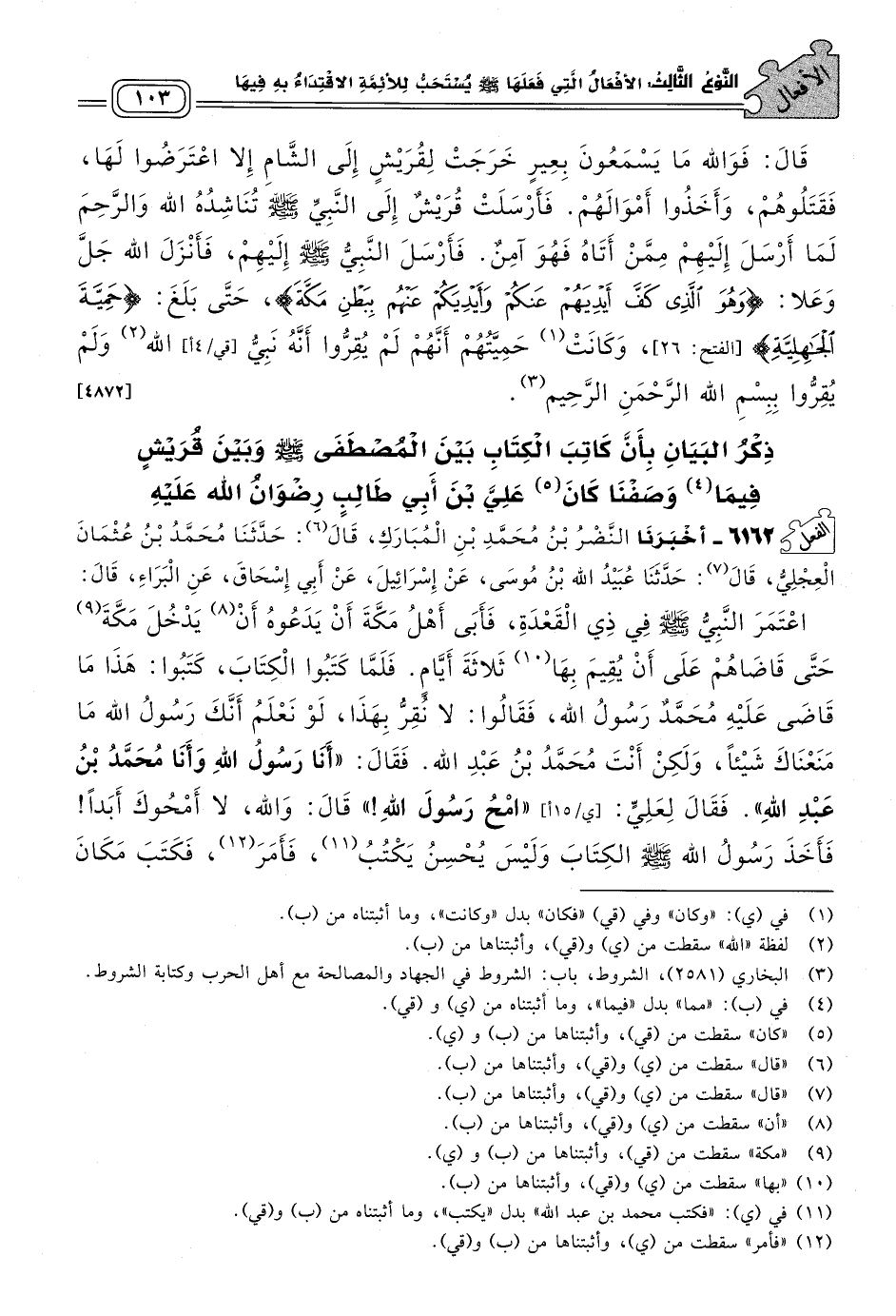 ذِكْرُ الْبَيَانِ بِأَنَّ كَاتِبَ الْكِتَابِ بَيْنَ الْمُصْطَفَى صَلى الله عَلَيه وسَلم وَبَيْنَ قُرَيْشٍ فِيمَا وَصَفْنَا كَانَ عَلِيَّ بْنَ أَبِي طَالِبٍ رِضْوَانُ اللهِ عَلَيْهِ.