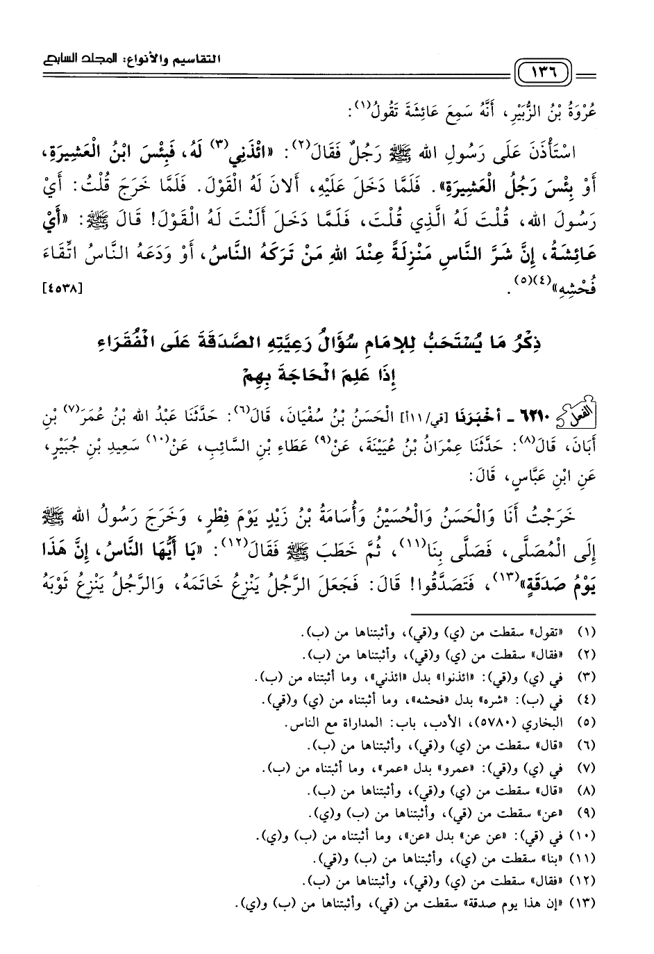 ذِكْرُ مَا يُسْتَحَبُّ لِلإِمَامِ سُؤَالُ رَعِيَّتِهِ الصَّدَقَةَ عَلَى الْفُقَرَاءِ إِذَا عَلِمَ الْحَاجَةَ بِهِمْ.