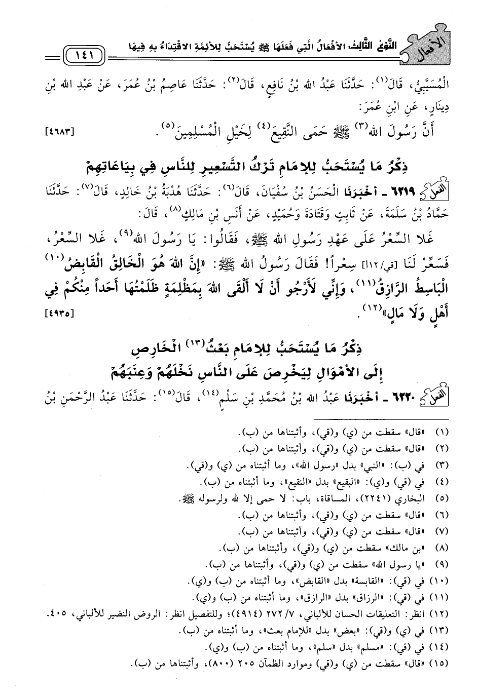 ذِكْرُ مَا يُسْتَحَبُّ لِلإِمَامِ تَرْكُ التَّسْعِيرِ لِلنَّاسِ فِي بِيَاعَاتِهِمْ.