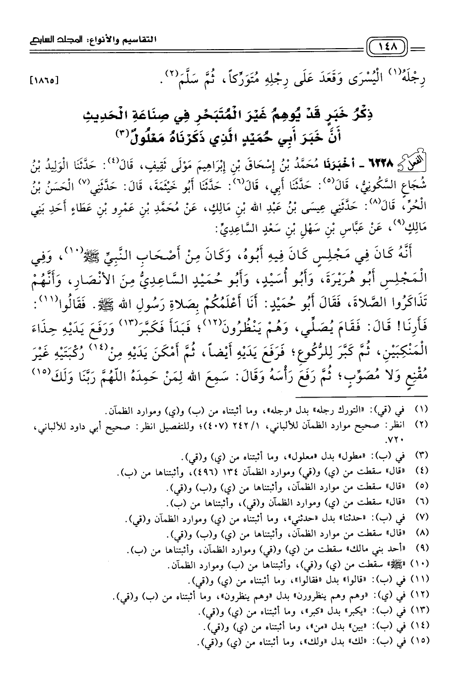 ذِكْرُ خَبَرٍ قَدْ يُوهِمُ غَيْرَ الْمُتَبَحِّرِ فِي صِنَاعَةِ الْحَدِيثِ أَنَّ خَبَرَ أَبِي حُمَيْدٍ الَّذِي ذَكَرْنَاهُ مَعْلُولٌ.