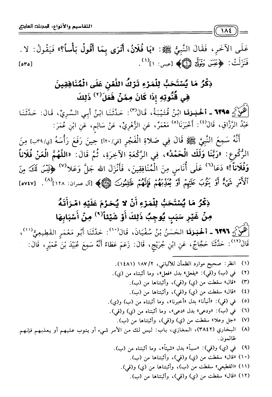 ذِكْرُ مَا يُسْتَحَبُّ لِلْمَرْءِ تَرْكُ اللَّعْنِ عَلَى الْمُنَافِقِينَ فِي قُنُوتِهِ إِذَا كَانَ مِمَّنْ فَعَلَ ذَلِكَ.