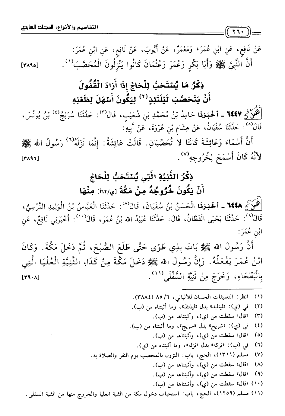 ٦٤٤٧ - أَخبَرنا حَامِدُ بْنُ مُحَمَّدِ بْنِ شُعَيْبٍ، قَالَ: حَدثنا سُرَيْجُ بْنُ يُونُسَ، قَالَ: حَدثنا سُفْيَانُ، عَنْ هِشَامِ بْنِ عُرْوَةَ، عَنْ أَبِيهِ، أَنَّ أَسْمَاءَ وَعَائِشَةَ كَانَتَا لَا تُحَصِّبَانِ، قَالَتْ عَائِشَةُ: إِنَّمَا نَزَلَهُ رَسُولُ اللهِ صَلى الله عَلَيه وسَلم لأَنَّهُ كَانَ أَسْمَحَ لِخُرُوجِهِ. [٣٨٩٦]