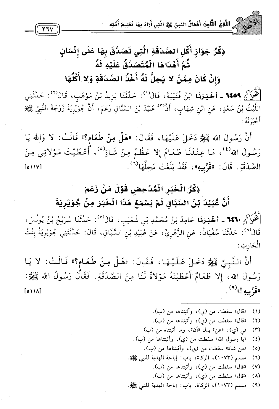 ٦٤٦٠ - أَخبَرنا حَامِدُ بْنُ مُحَمَّدِ بْنِ شُعَيْبٍ، قَالَ: حَدثنا سُرَيْجُ بْنُ يُونُسَ، قَالَ: حَدثنا سُفْيَانُ، عَنِ الزُّهْرِيِّ، عَنْ عُبَيْدِ بْنِ السَّبَّاقِ، قَالَ: حَدَّثَتْنِي جُوَيْرِيَةُ بِنْتُ الْحَارِثِ، أَنَّ النَّبِيَّ صَلى الله عَلَيه وسَلم دَخَلَ عَلَيْهَا، فَقَالَ: "هَلْ مِنْ طَعَامٍ؟ " قَالَتْ: لَا يَا رَسُولَ اللهِ، إِلَاّ طَعَامٌ أُعْطِيَتْهُ مَوْلَاةٌ لَنَا مِنَ الصَّدَقَةِ، فَقَالَ رَسُولُ اللهِ صَلى الله عَلَيه وسَلم: "قَرِّبِيهِ". [٥١١٨]