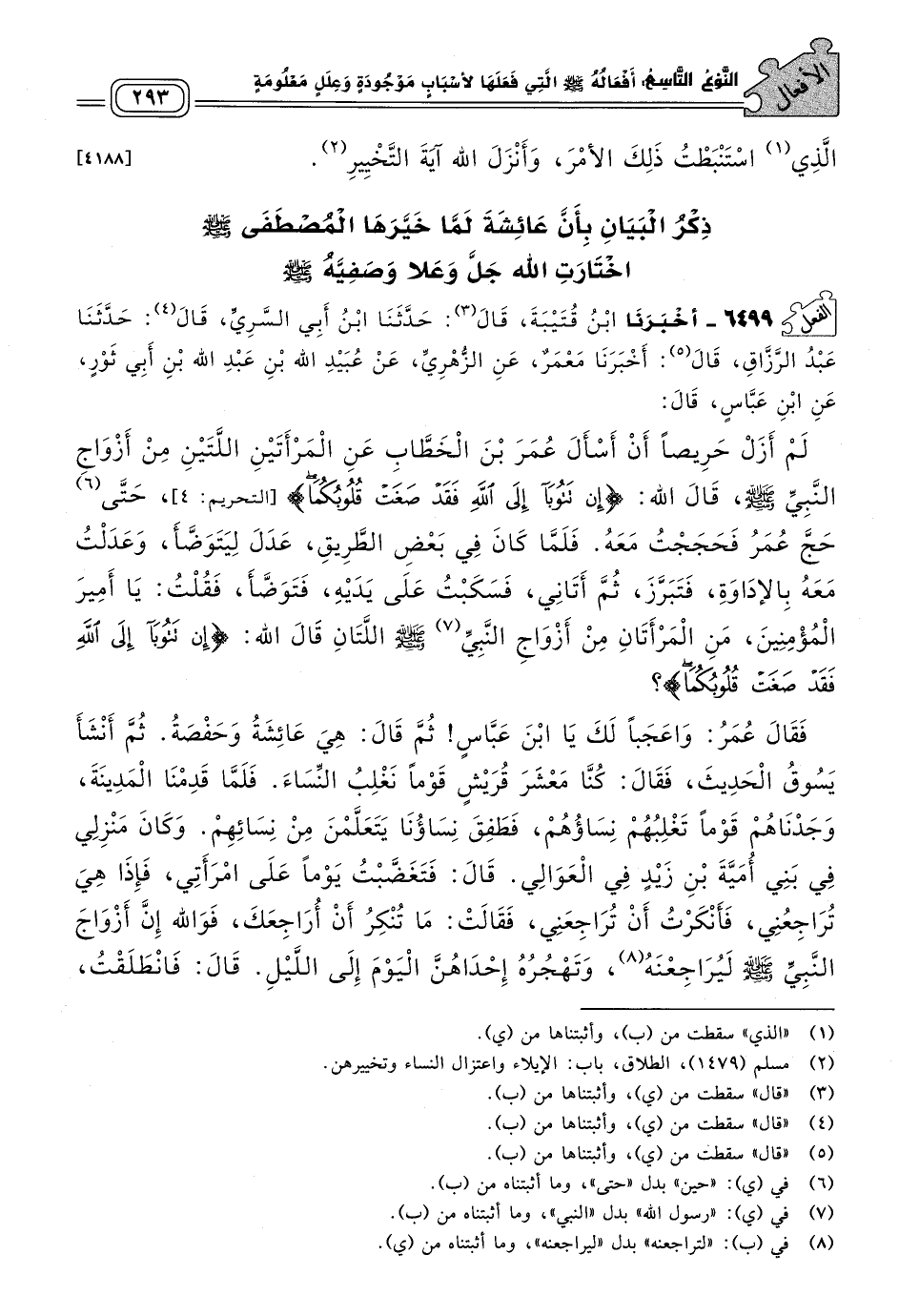 ذِكْرُ الْبَيَانِ بِأَنَّ عَائِشَةَ لَمَّا خَيَّرَهَا الْمُصْطَفَى صَلى الله عَلَيه وسَلم اخْتَارَتِ اللهَ جَلَّ وَعَلَا وَصَفِيَّهُ صَلى الله عَلَيه وسَلم.