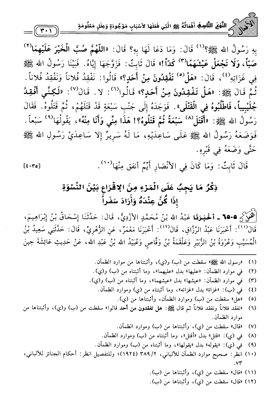 أَنَّ عَائِشَةَ قَالَتْ: كَانَ رَسُولُ اللهِ صَلى الله عَلَيه وسَلم إِذَا أَرَادَ أَنْ يَخْرُجَ سَفَرًا أَقْرَعَ بَيْنَ نِسَائِهِ، فَأَيَّتُهُنَّ خَرَجَ سَهْمُهَا خَرَجَ بِهَا رَسُولُ اللهِ صَلى الله عَلَيه وسَلم مَعَهُ، قَالَتْ: فَأَقْرَعَ بَيْنَنَا فِي غَزْوَةٍ غَزَاهَا، فَخَرَجَ سَهْمِي فَخَرَجْنَا مَعَ رَسُولِ اللهِ صَلى الله عَلَيه وسَلم،