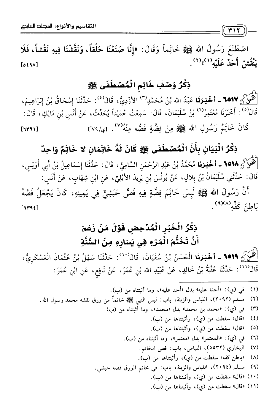 ٦٥١٧ - أَخبَرنا عَبْدُ اللهِ بْنُ مُحَمَّدٍ الأَزْدِيُّ، قَالَ: حَدثنا إِسْحَاقُ بْنُ إِبْرَاهِيمَ، قَالَ: أَخبَرنا مُعْتَمِرُ بْنُ سُلَيْمَانَ، قَالَ: سَمِعْتُ حُمَيْدًا يُحَدِّثُ، عَنْ أَنَسِ بْنِ مَالِكٍ، قَالَ: كَانَ خَاتَمُ رَسُولِ اللهِ صَلى الله عَلَيه وسَلم مِنْ فِضَّةٍ فَصُّهُ مِنْهُ. [٦٣٩١]