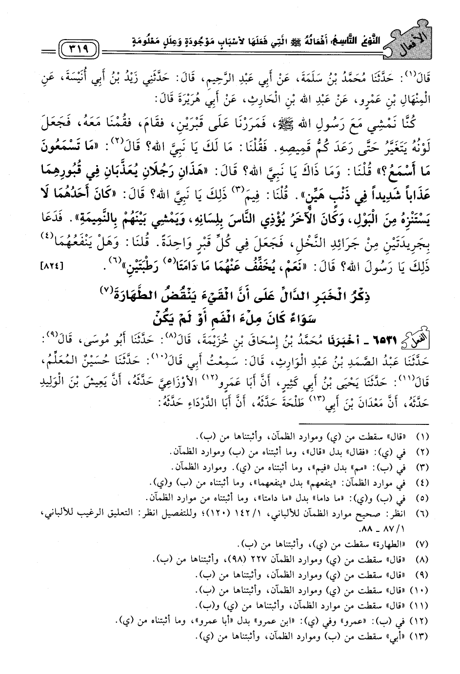 ٦٥٣١ - أَخبَرنا مُحَمَّدُ بْنُ إِسْحَاقَ بْنِ خُزَيْمَةَ، قَالَ: حَدثنا أَبُو مُوسَى، قَالَ: حَدثنا عَبْدُ الصَّمَدِ بْنُ عَبْدِ الْوَارِثِ، قَالَ: سَمِعْتُ أَبِي، قَالَ: حَدثنا حُسَيْنٌ الْمُعَلِّمُ، قَالَ: حَدثنا يَحْيَى بْنُ أَبِي كَثِيرٍ، أَنَّ أَبَا عَمْرٍو الأَوْزَاعِيَّ حَدَّثَهُ، أَنَّ يَعِيشَ بْنَ الْوَلِيدِ حَدَّثَهُ، أَنَّ مَعْدَانَ بْنَ أَبِي طَلْحَةَ حَدَّثَهُ، أَنَّ أَبَا الدَّرْدَاءِ حَدَّثَهُ؛ أَنَّ النَّبِيَّ صَلى الله عَلَيه وسَلم قَاءَ فَأَفْطَرَ، فَلَقِيتُ ثَوْبَانَ فِي مَسْجِدِ دِمَشْقَ، فَذَكَرْتُ لَهُ ذَلِكَ، فَقَالَ: صَدَقَ، أَنَا صَبَبْتُ لَهُ وَضُوءًا. [١٠٩٧]