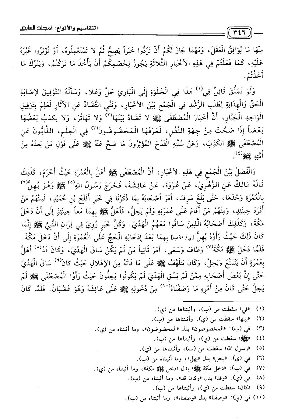 فَلَمَّا صَحَّ أَنَّهُ لَمْ يَكُنْ فِي حَالَةٍ وَاحِدَةٍ قَارِنًا مُتَمَتِّعًا مُفْرَدًا، صَحَّ أَنَّ الأَخْبَارَ يَجِبُ أَنْ يُقْبَلَ مِنْهَا مَا يُوَافِقُ الْعَقْلَ، وَمَهْمَا جَازَ لَكُمْ أَنْ تَرُدُّوا خَبَرًا يَصِحُّ ثُمَّ لَا تَسْتَعْمِلُوهُ، أَوْ تُؤْثِرُوا غَيْرَهُ عَلَيْهِ، كَمَا فَعَلْتُمْ فِي هَذِهِ الأَخْبَارِ الثَّلَاثَةِ، يَجُوزُ لِخَصْمِكُمْ أَنْ يَأْخُذَ مَا تَرَكْتُمْ، وَيَتْرُكَ مَا أَخَذْتُمْ.