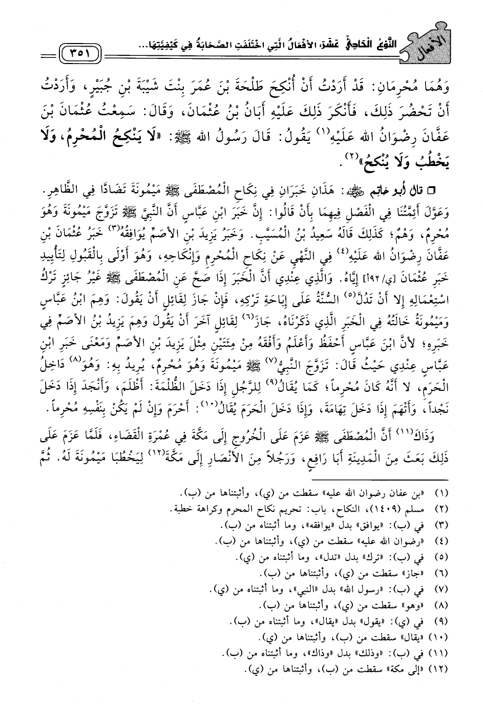 وَخَبَرُ يَزِيدَ بْنِ الأَصَمِّ يُوَافِقُهُ خَبَرُ عُثْمَانَ بْنِ عَفَّانَ رِضْوَانُ اللهِ عَلَيْهِ فِي النَّهْيِ عَنْ نِكَاحِ الْمُحْرِمِ وَإِنْكَاحِهِ، وَهُوَ أَوْلَى بِالْقَبُولِ لِتَأْيِيدِ خَبَرِ عُثْمَانَ إِيَّاهُ.