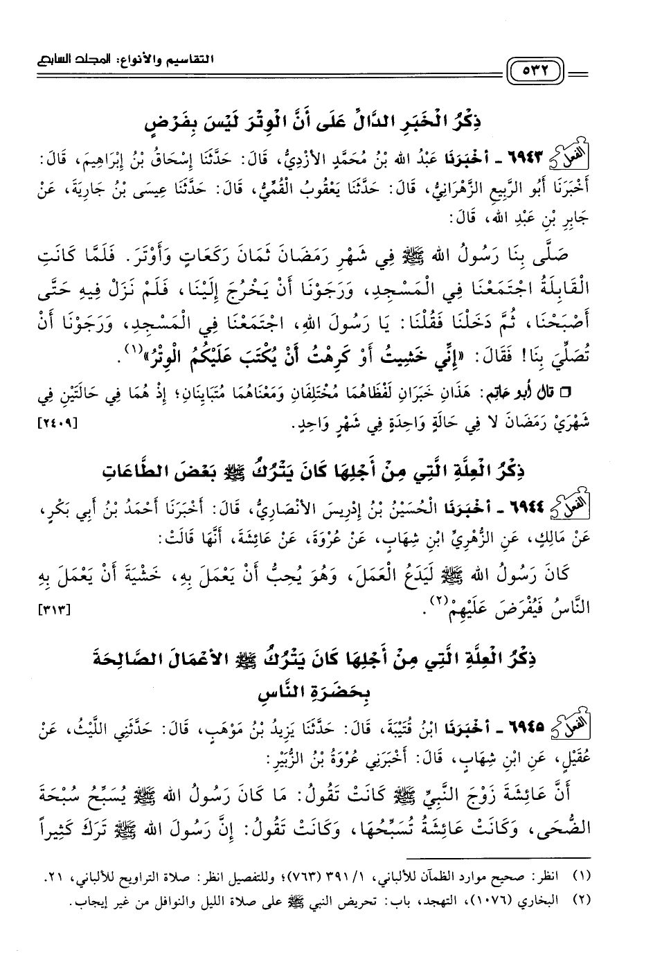 ذِكْرُ الْخَبَرِ الدَّالِّ عَلَى أَنَّ الْوِتْرَ لَيْسَ بِفَرْضٍ.