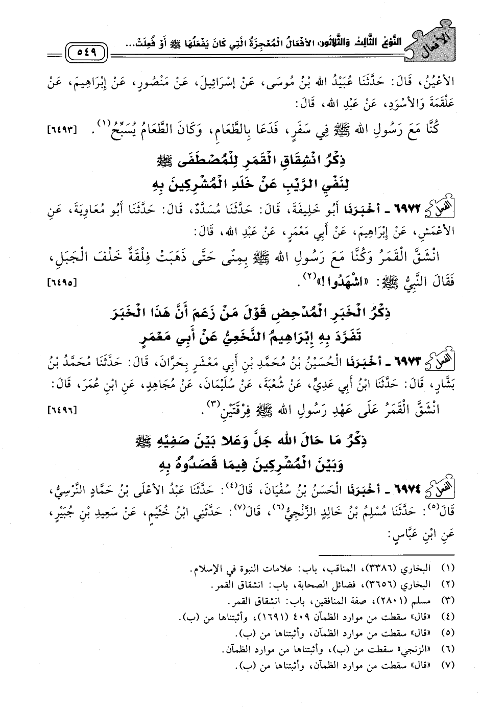 ٦٩٧٣ - أَخبَرنا الْحُسَيْنُ بْنُ مُحَمَّدِ بْنِ أَبِي مَعْشَرٍ، بِحَرَّانَ، قَالَ: حَدثنا مُحَمَّدُ بْنُ بَشَّارٍ، قَالَ: حَدثنا ابْنُ أَبِي عَدِيٍّ، عَنْ شُعْبَةَ، عَنْ سُلَيْمَانَ، عَنْ مُجَاهِدٍ، عَنِ ابْنِ عُمَرَ، قَالَ: انْشَقَّ الْقَمَرُ عَلَى عَهْدِ رَسُولِ اللهِ صَلى الله عَلَيه وسَلم فِرْقَتَيْنِ. [٦٤٩٦]