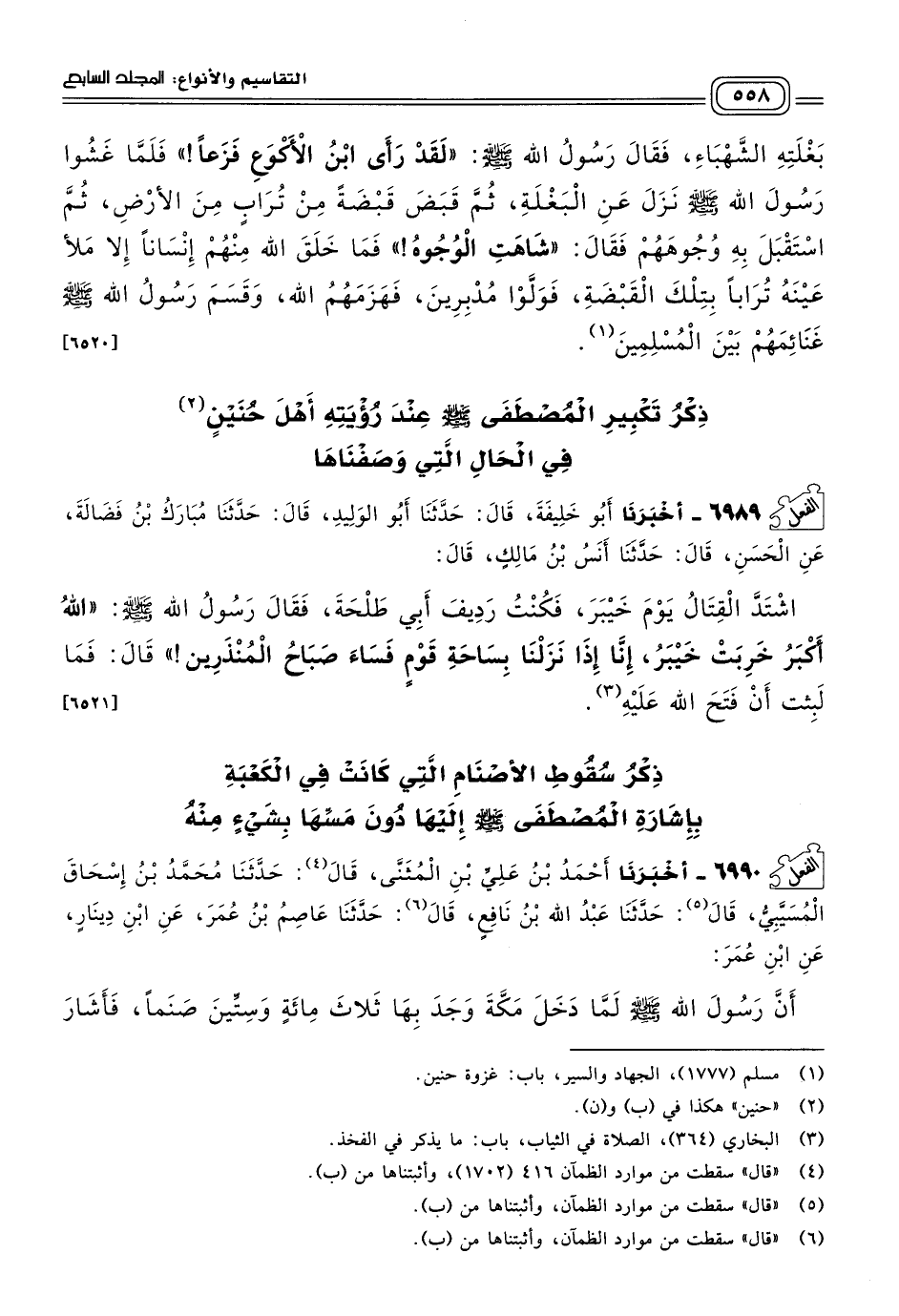 ذِكْرُ تَكْبِيرِ الْمُصْطَفَى صَلى الله عَلَيه وسَلم عِنْدَ رُؤْيَتِهِ أَهْلَ حُنَيْنٍ فِي الْحَالِ الَّتِي وَصَفْنَاهَا.