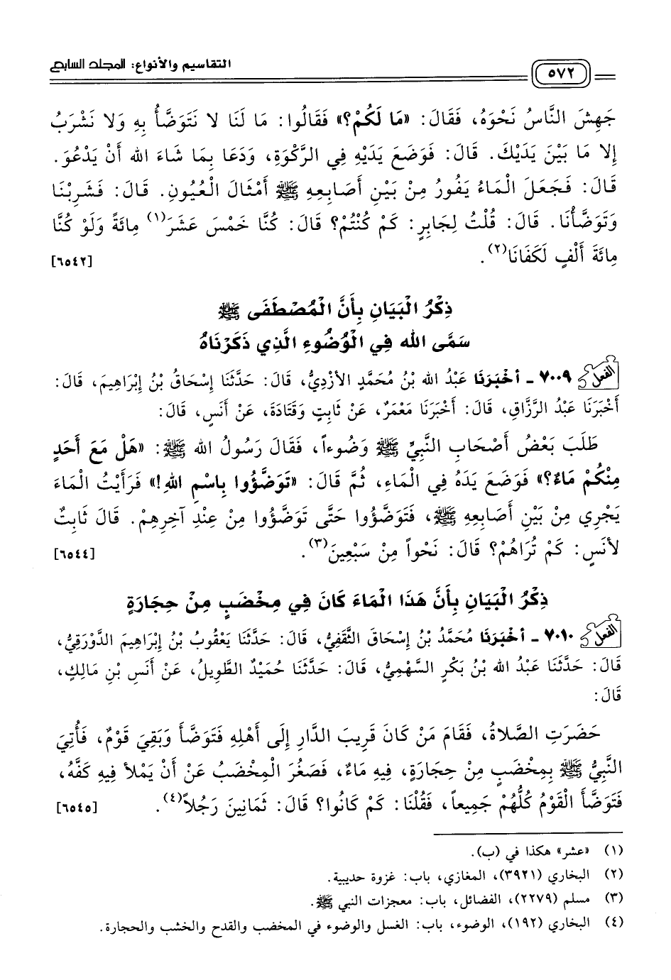 ٧٠١٠ - أَخبَرنا مُحَمَّدُ بْنُ إِسْحَاقَ الثَّقَفِيُّ، قَالَ: حَدثنا يَعْقُوبُ بْنُ إِبْرَاهِيمَ الدَّوْرَقِيُّ، قَالَ: حَدثنا عَبْدُ اللهِ بْنُ بَكْرٍ السَّهْمِيُّ، قَالَ: حَدثنا حُمَيْدٌ الطَّوِيلُ، عَنْ أَنَسِ بْنِ مَالِكٍ، قَالَ: حَضَرَتِ الصَّلَاةُ، فَقَامَ مَنْ كَانَ قَرِيبَ الدَّارِ إِلَى أَهْلِهِ، فَتَوَضَّأَ، وَبَقِيَ قَوْمٌ، فَأُتِيَ النَّبِيُّ صَلى الله عَلَيه وسَلم بِمِخْضَبٍ مِنْ حِجَارَةٍ فِيهِ مَاءٌ، فَصَغُرَ الْمِخْضَبُ عَنْ أَنْ يَمْلأَ فِيهِ كَفَّهُ، فَتَوَضَّأَ الْقَوْمُ كُلُّهُمْ جَمِيعًا، فَقُلْنَا: كَمْ كَانُوا؟ قَالَ: ثَمَانِينَ رَجُلاً. [٦٥٤٥]