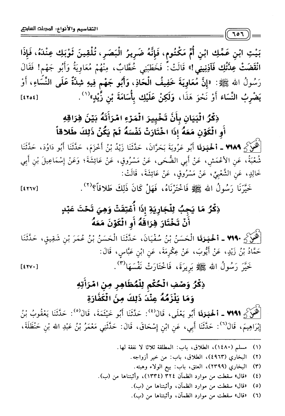 ٧١٩٠ - أَخبَرنا الْحَسَنُ بْنُ سُفْيَانَ، حَدثنا الْحَسَنُ بْنُ عُمَرَ بْنِ شَقِيقٍ، حَدثنا حَمَّادُ بْنُ زَيْدٍ، عَنْ أَيُّوبَ، عَنْ عِكْرِمَةَ، عَنِ ابْنِ عَبَّاسٍ، قَالَ: خَيَّرَ رَسُولُ اللهِ صَلى الله عَلَيه وسَلم بَرِيرَةَ، فَاخْتَارَتْ نَفْسَهَا. [٤٢٧٠]
