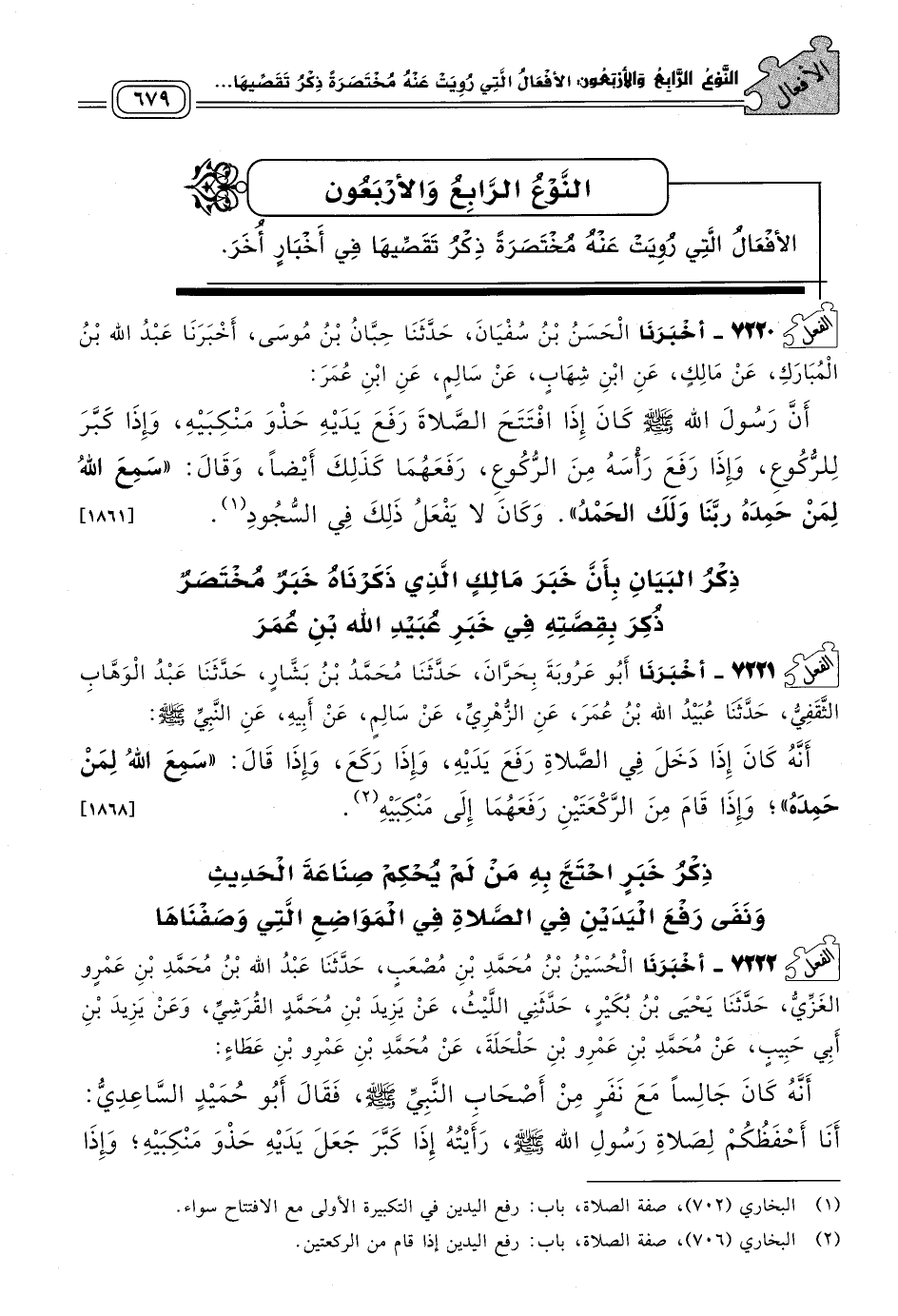 ذِكْرُ خَبَرٍ احْتَجَّ بِهِ مَنْ لَمْ يُحْكِمْ صِنَاعَةَ الْحَدِيثِ وَنَفَى رَفْعَ الْيَدَيْنِ فِي الصَّلَاةِ فِي الْمَوَاضِعِ الَّتِي وَصَفْنَاهَا.