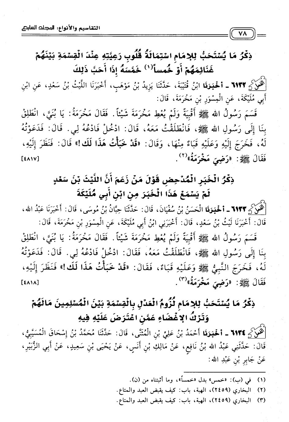 ذِكْرُ مَا يُسْتَحَبُّ لِلإِمَامِ اسْتِمَالَةُ قُلُوبِ رَعِيَّتِهِ عِنْدَ الْقِسْمَةِ بَيْنَهُمْ غَنَائِمَهُمْ أَوْ خُمُسًا خَمَّسَهُ إِذَا أَحَبَّ ذَلِكَ.