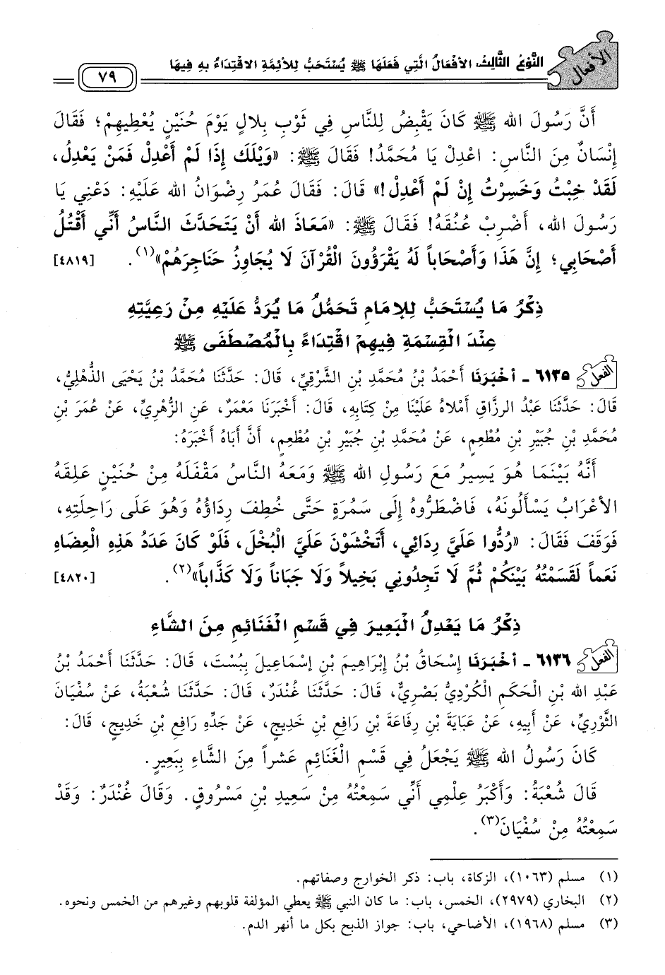 ذِكْرُ مَا يُسْتَحَبُّ لِلإِمَامِ تَحَمُّلُ مَا يُرَدُّ عَلَيْهِ مِنْ رَعِيَّتِهِ عِنْدَ الْقِسْمَةِ فِيهِم اقْتِدَاءً بِالْمُصْطَفَى صَلى الله عَلَيه وسَلم.
