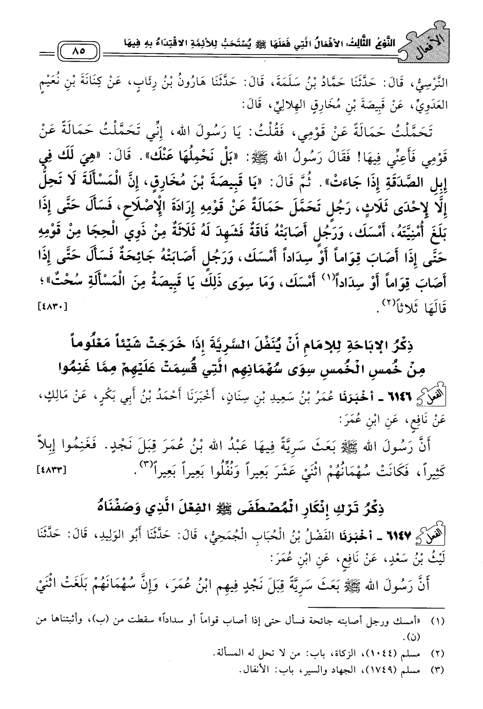 ذِكْرُ الإِبَاحَةِ لِلإِمَامِ أَنْ يُنَفِّلَ السَّرِيَّةَ إِذَا خَرَجَتْ شَيْئًا مَعْلُومًا مِنْ خُمُسِ الْخُمُسِ سِوَى سُهْمَانِهِمُ الَّتِي قُسِمَتْ عَلَيْهِمْ مِمَّا غَنِمُوا.