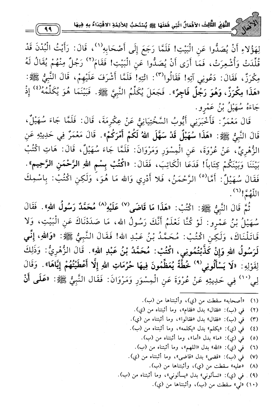 فَقَالَ سُهَيْلُ بْنُ عَمْرٍو: وَعَلَى أَنَّهُ لَا يَأْتِيكَ مِنَّا رَجُلٌ وَإِنْ كَانَ عَلَى دِينِكَ أَوْ يُرِيدُ دِينَكَ إِلَاّ رَدَدْتَهُ إِلَيْنَا، فَقَالَ الْمُسْلِمُونَ: سُبْحَانَ اللهِ! كَيْفَ يُرَدُّ إِلَى الْمُشْرِكِينَ وَقَدْ جَاءَ مُسْلِمًا، فَبَيْنَمَا هُمْ عَلَى ذَلِكَ إِذْ جَاءَ أَبُو جَنْدَلِ بْنُ سُهَيْلِ بْنِ عَمْرٍو يَرْسُفُ فِي قُيُودِهِ قَدْ خَرَجَ مِنْ أَسْفَلِ مَكَّةَ حَتَّى رَمَى بِنَفْسِهِ بَيْنَ الْمُسْلِمِينَ، فَقَالَ سُهَيْلُ بْنُ عَمْرٍو: يَا مُحَمَّدُ، هَذَا أَوَّلُ مَنْ نُقَاضِيكَ عَلَيْهِ أَنْ تَرُدَّهُ إِلَيَّ! فَقَالَ النَّبِيُّ صَلى الله عَلَيه وسَلم: "إِنَّا لَمْ نُمْضِ الْكِتَابَ بَعْدُ"، فَقَالَ: وَاللهِ لَا أُصَالِحُكَ عَلَى شَيْءٍ أَبَدًا، فَقَالَ النَّبِيُّ صَلى الله عَلَيه وسَلم: "فَأَجِزْهُ لِي! " فَقَالَ: مَا أَنَا بِمُجِيزِهِ لَكَ، قَالَ: "فَافْعَلْ! " قَالَ: مَا أَنَا بِفَاعِلٍ، قَالَ مِكْرَزٌ: بَلْ قَدْ أَجَزْنَاهُ لَكَ. فَقَالَ أَبُو جَنْدَلِ بْنُ سُهَيْلِ بْنِ عَمْرٍو: يَا مَعْشَرَ الْمُسْلِمِينَ، أُرَدُّ إِلَى الْمُشْرِكِينَ وَقَدْ جِئْتُ مُسْلِمًا، أَلَا تَرَوْنَ إِلَى مَا قَدْ لَقِيتُ! وَكَانَ قَدْ عُذِّبَ عَذَابًا شَدِيدًا فِي اللهِ.