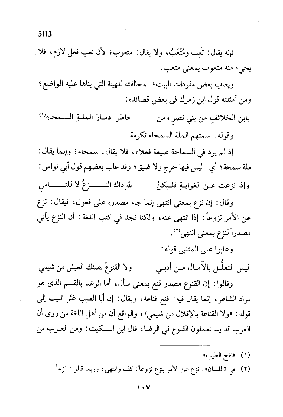 وقال: إن نزع بمعنى انتهى إنما جاء مصدره على فعول، فيقال: نزع عن الأمر نزوعاً: إذا انتهى عنه، ولكنا نجد في كتب اللغة: أن النزع يأتي مصدراً لنزع بمعنى انتهى (¬2).