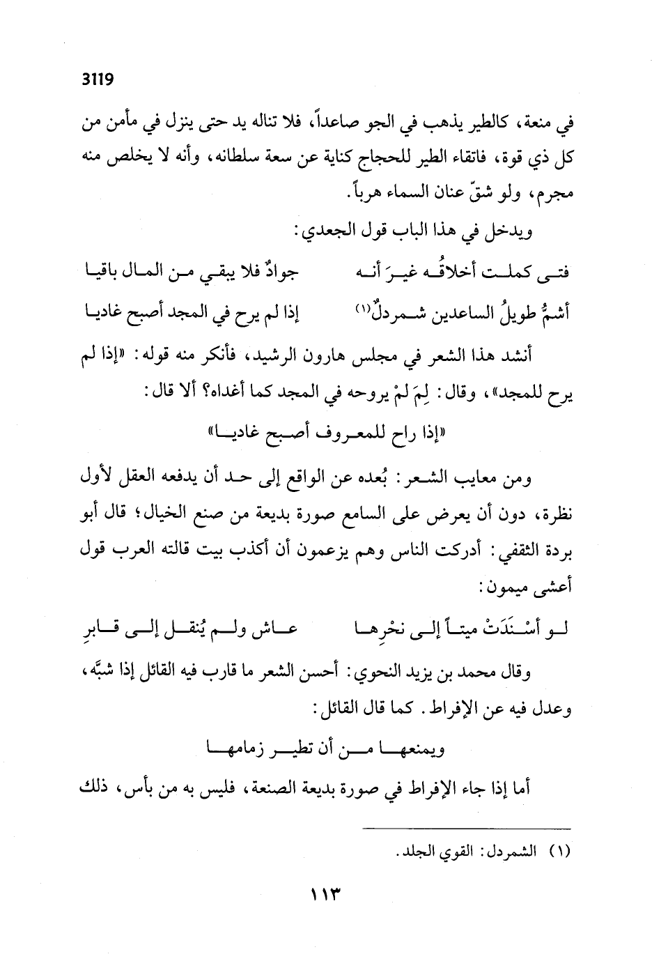 أما إذا جاء الإفراط في صورة بديعة الصنعة، فليس به من بأس، ذلك