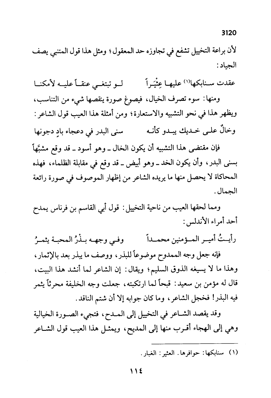 ومما لحقها العيب من ناحية التخييل: قول أبي القاسم بن فرناس يمدح أحد أمراء الأندلس: