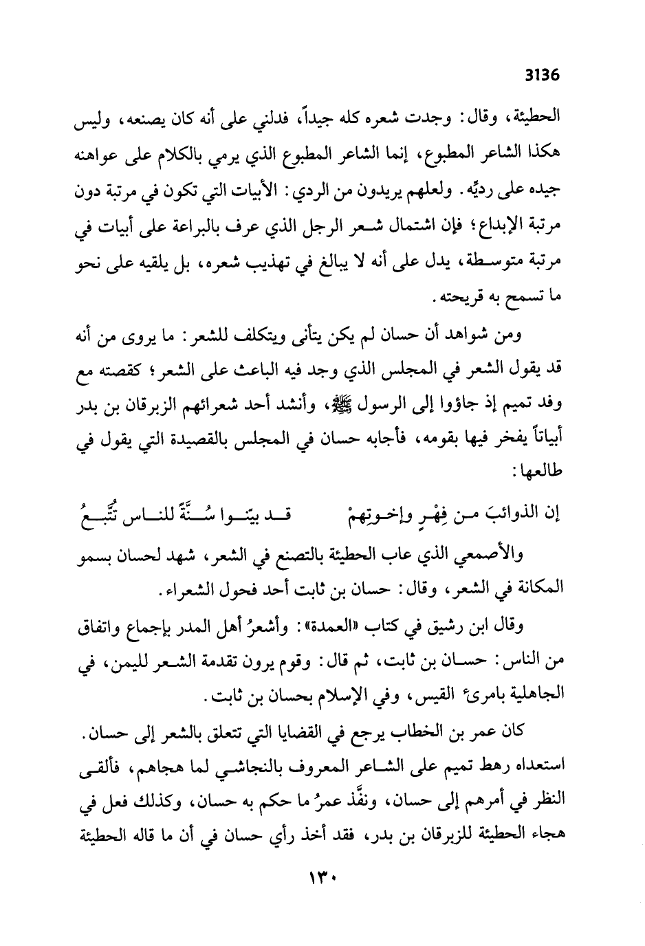 كان عمر بن الخطاب يرجع في القضايا التي تتعلق بالشعر إلى حسان.