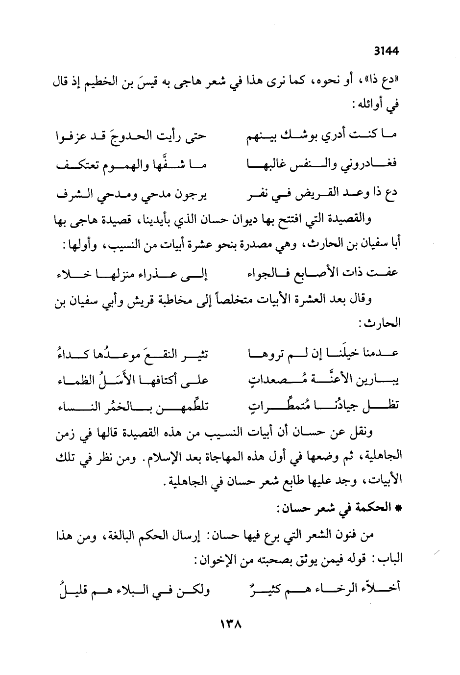 "دع ذا"، أو نحوه، كما نرى هذا في شعر هاجى به قيسَ بن الخطيم إذ قال في أوائله: